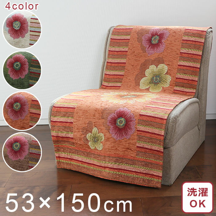 アネモネソファーカバー 1人掛け 【送料無料】 約53×150cm ソファカバー ジャガード織 中掛け 柔らかい リビング ベージュ オレンジ グリーン ブラウン シェニール糸 バンド無し 花柄 綿混 洗濯可 イタリア製 おしゃれ