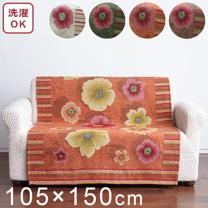 アネモネソファーカバー 2人掛け 【送料無料】 約105×150cm ソファカバー ジャガード織 中掛け 柔らかい リビング ベージュ オレンジ グリーン ブラウン シェニール糸 バンド無し 花柄 綿混 洗濯可 イタリア製 おしゃれ