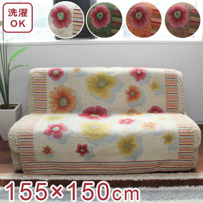 アネモネソファーカバー 3人掛け 【送料無料】 約155×150cm ソファカバー ジャガード織 中掛け 柔らかい リビング ベージュ オレンジ グリーン ブラウン シェニール糸 バンド無し 花柄 綿混 洗濯可 イタリア製 おしゃれ