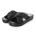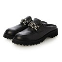 【日本製】 バークレー BARCLAY 厚底プラットフォーム ソフトチューブレザー カジュアル ミュールサンダル (BLK)