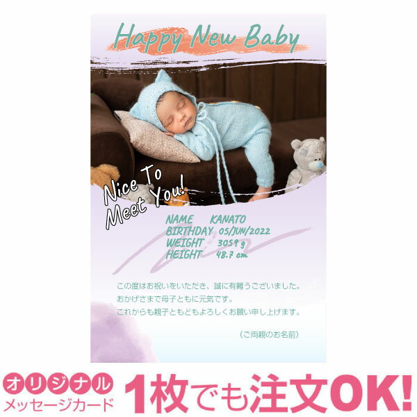 【あなたのあいさつ文を入れて1枚から印刷OK】 写真入り オリジナル メッセージカード 出産報告 出産内祝い 結婚内祝い 快気内祝い 内祝い お祝い お返し おしゃれな 挨拶状 バースデーカード 誕生日 命名 メッセージ はがき