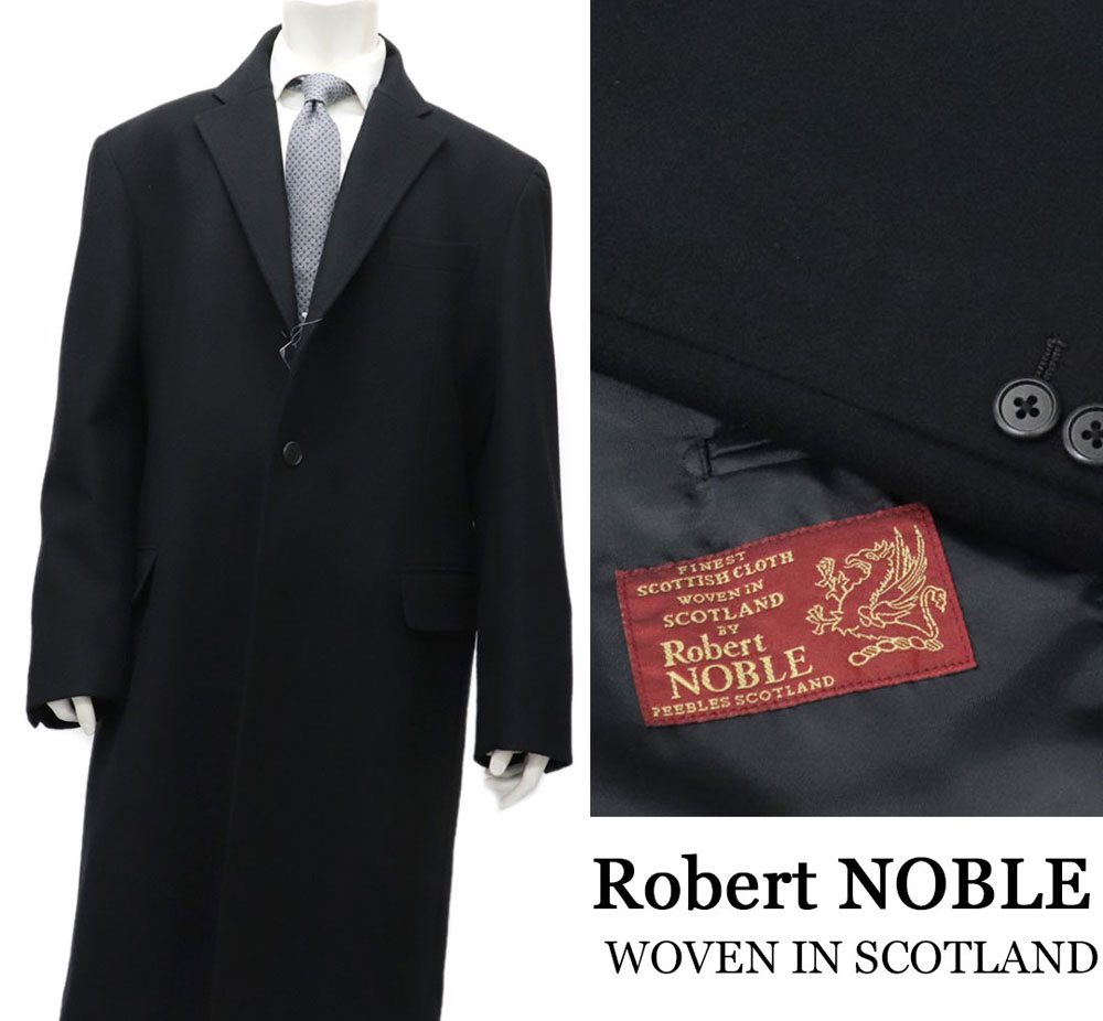 Robert NOBLE ロバートノーブル イギリス製生地 カシミヤ混ウール チェスターコート メンズ 秋冬 オーダー工場仕立て ロングコート ビジネスコート オーダーコート 黒 ブラック フォーマル 日本製 大きいサイズ【送料無料】160000W