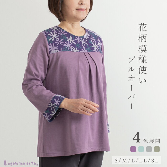 ■注意事項 ※実際の商品色にできるだけ近づけるよう撮影を行っておりますが、ご使用のモニターによって実際の明るさや色と多少異なって見える場合がございます。あらかじめご了承ください。 ※当店で販売中の商品は、複数店舗にて在庫を共有しているため、ご注文を頂きました場合でも、タイミングによりご注文の商品がご用意できない場合がございます。 その際は後日メールまたはお電話にてご連絡させて頂きます。 ◆検索されている関連キーワード レディース ファッション ミセスファッション シニアファッション 50代 60代 70代 80代 女性 婦人服 服 プレゼント 誕生日プレゼント 誕生日 敬老の日 母の日 贈り物 ギフト 母 祖母 お母さん おばあちゃん 妻 お出かけ おしゃれ おしゃれ着 Nagominosato なごみのさと ナゴミノサト なごみの里 和柄 和風 和柄服 和柄おしゃれ服 和のおしゃれ あす楽 即日発送 翌日配達 祖母 おしゃれ 高齢者 S 体型カバー 3L 花柄 ホームウェア ミセスファッション シニアファッション M L LL 花柄◆商品説明 前ヨークと、袖口に多色使いの花柄ジャガードを切替たプルオーバー。シーンやお手持ちのボトムスに合わせて選べる全4色展開。 フロントにはタックでギャザーを、袖口はゆったり、ふんわり軽やかな着心地です。 綿100%素材なのでさらりと快適にお召し頂けます。春や秋口、季節の変わり目におすすめです。 商品サイズ (cm)着丈バスト肩幅袖丈 S63963649 M641003750 L651063851 LL661123952 3L671184053 ※商品タグには「ヌード寸法(該当のサイズに適した体の寸法の目安)を表記しています。サイズ計測方法はこちら 商品スペック ■素材綿100% ■お手入れ手洗い可※詳しくは商品に付いている洗濯表示をご覧ください ■伸縮性伸縮性あり ■透け感ほぼ無し ■生産日本製 2