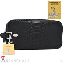 パイソン セカンドバッグ メンズ ブラック マット加工 Wファスナー コンパクト 幅22cm 紳士用 錦ヘビ 新品
