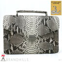パイソン セカンドバッグ メンズ ナチュラル マット加工 スネーク 錦ヘビ ダイヤルロック ハンドル付 横幅27cm 紳士用 新品