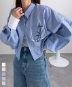パイピング ポケット ショート丈 シャツ [C7425] レディース 20代 30代 40代 トップス アウター 長袖 ブラウス ストライプ 襟 衿 カフス ロングカフス ポケット パイピング クロップド 短丈 ショート フリー 丈短め 無地 オフィスカジュアル 春 春服 羽織り シンプル
