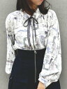ボウタイ トップス レディース 送料無料 ブラウス シャツ フリル リボンタイ スカーフ ドット トリム パイピング 花柄 レトロ ヴィンテージ S M L XL 薄手 プリント 白 ホワイト かわいい 大人女子 きれいめ 上品 お洒落 ロングカフス