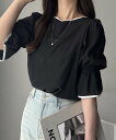 【SALE/50%OFF】GeeRA 前後2WAY配色パイピング5分袖ブラウス ジーラ トップス シャツ・ブラウス ホワイト ブラック