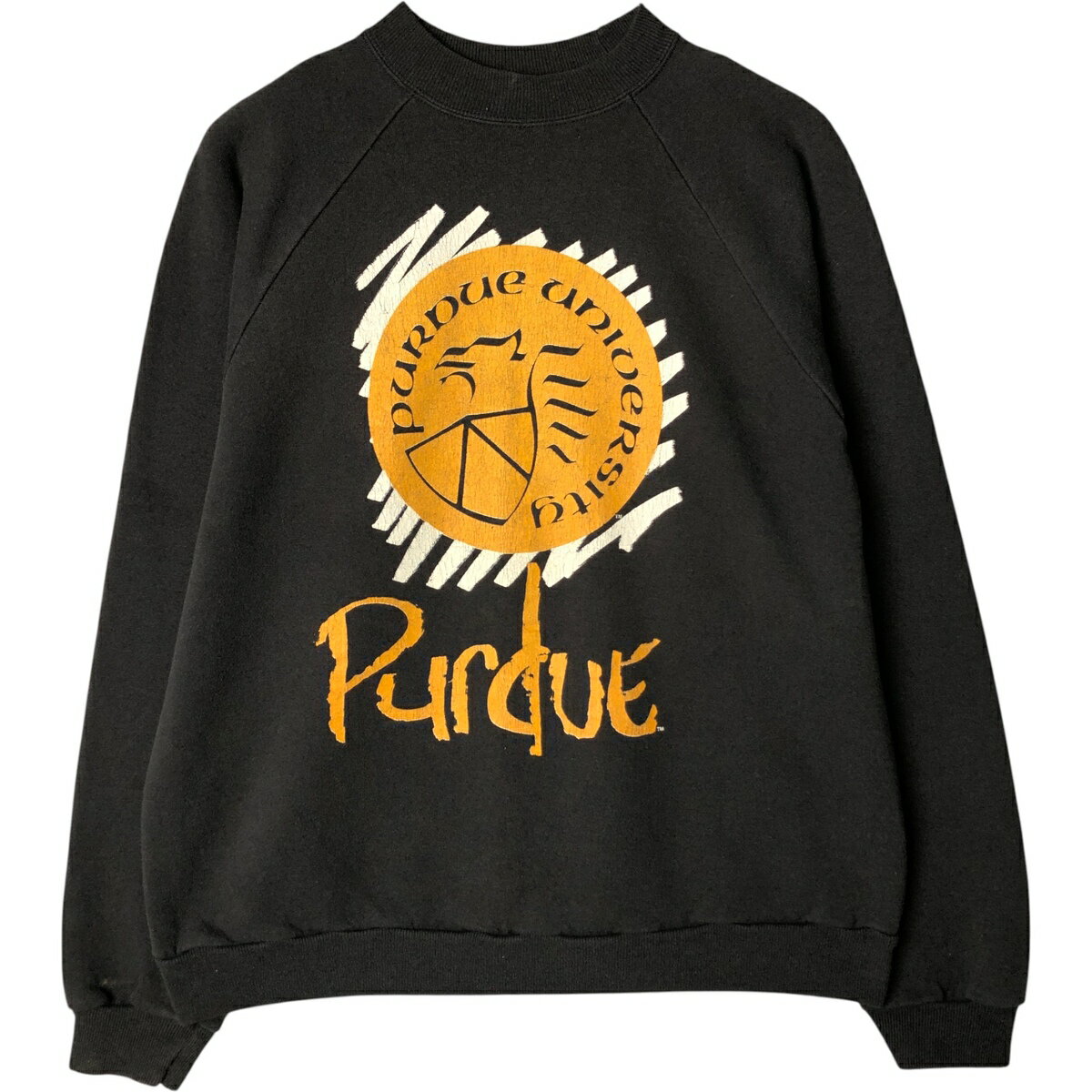 80年代~90年代 USA製 PURDUE パデュー大学 ラグランスウェットシャツ カレッジプリント メンズM相当 古着【中古】