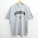 【中古】古着 半袖 ビンテージ ヴィンテージTシャツ メンズ 00年代 00s パデュー大学 クルーネック 丸首 グレー 霜降り XLサイズ 中古 | 春夏 夏物 夏服 ヴィンテージTシャツ メンズファッション カットソー ティーシャツ ティシャツ メンズTシャツ 半袖Tシャ