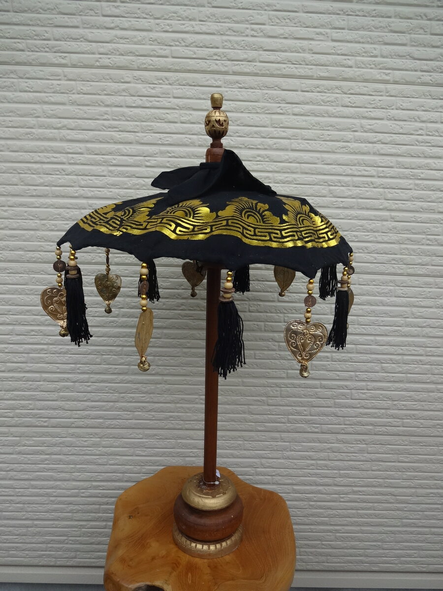 製造国 インドネシア 素材 布、アルベシアウッド サイズ 全長 220cm 上段傘の直径 50cm 中段傘の直径 58cm 下段傘の直径 68cm カラー ブラック 関連 インドネシアバリ島で厳選買い付け! アジアン雑貨 置物 業務用 店舗用 ディスプレイ 祭礼 バリの傘 オブジェ 飾り パユン アジアンカフェ 飲食店 店舗様お勧め ※撮影小物は商品に含まれません。 ※入荷の時期により予告なく仕様が異なる場合がございます。 ※傘のみの販売です。台座はございません。 ※民芸品レベルの作りとなっておりますので、多少粗雑な部分が見受けられますがご了承のうえご注文ください。 ※傘部分は閉じた状態でのお届けとなります。ディスプレイの際は傘を開いて、付属のつっかえ棒を穴に差し込んで留めてください。 ※姉妹店でも販売しておりますので、売り切れの場合はご了承下さい。 プレゼント包装は お受けできません ※大型商品および壊れやすい商品の プレゼント包装はご遠慮下さいませ。 バリ傘 パユン 3段 H220cm ブラック こてこてのバリ風の装飾には欠かせない特大サイズのバリ傘(パユン)です。 ブラック・オレンジ・レッド・イエローの4カラーをご用意いたしました。 一般のご家庭にもリゾートインテリアにアクセントとしてオススメです。 バリ風、アジアン風なレストランや エステサロンなどの店舗様、これから お店を開かれる方にもお勧めです! お店の入り口など両サイドに置くだけで、 現地のホテルやレストランのような 雰囲気になりますよ♪ 手作り商品のため、多少の個体差がございます。 また、傘部分にゆがみがあり、棒も真っ直ぐではございません。 ご理解のうえ、お買い求め下さい。 傘の金色の模様が太陽の光を浴びるとキラキラ輝いてとっても綺麗ですよ◎ 行事以外でも、バリ傘(パユン)は石像やお寺など幅広く使われており、 バリにはなくてはならない存在です。そんな、バリ島ならではの雰囲気を簡単に、 お気軽にお楽しみください^^ 【お買い上げの前にご確認ください】 ※手作り品のため、サイズ、細かい仕上げや模様、色使いに個体差があります。 ※傘部分にゆがみがあります。棒も真っ直ぐではなく多少曲がっています。 ※バリ島スカワティ地区のセレモニー用具店でオーダーしたものです。 現地祭礼で本当に使用する民芸品レベルの商品となり、歪みやホツレなどがある場合もございます。 ※屋外で使用される場合は転倒や風で飛ばさせないようご注意ください。 ※台座なし、傘のみの販売となります。(傘立てなどに立て掛けてお使いください) ※内装・外装問わずお使いいただけますが、雨ざらしはお勧めできません。 屋根のある場所や晴れた日にお使いください。 もちろん、ディスプレイ用ですので、雨傘・日傘としてはお使いいただけません。 ◆お好きなバリ傘をお選びください◆ 3段220cm:ブラック 3段220cm:オレンジ 3段220cm:レッド 3段220cm:イエロー