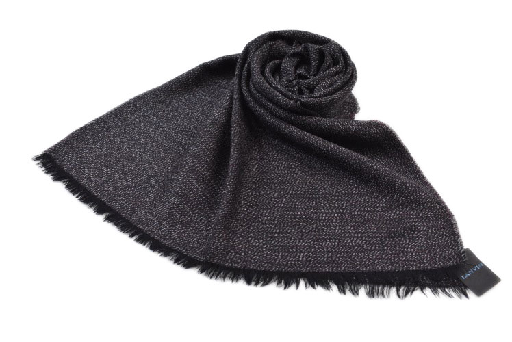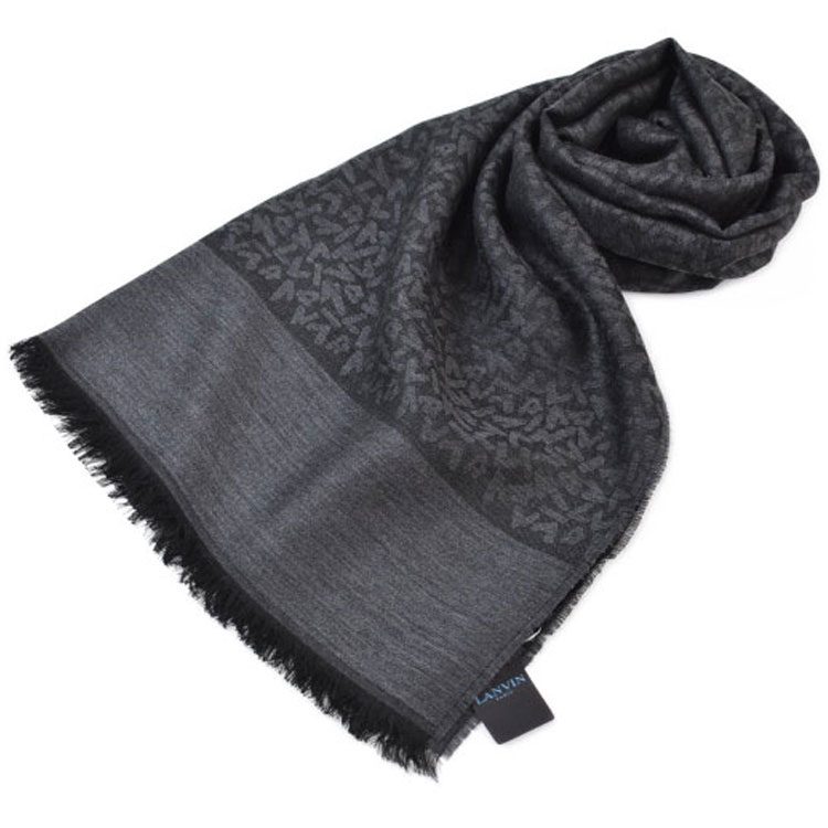 ランバン パリス ストール マフラー メンズ ブランド LANVIN PARIS ウール シルク 混 アルファベット ロゴ デザイン イタリア製 チャコール グレー 系 男性 紳士 x1x