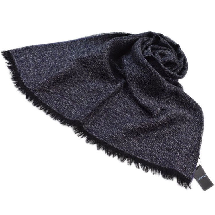 ランバン パリス ストール マフラー メンズ ブランド LANVIN PARIS ウール 100% ロゴ 刺繍 デザイン ネイビー 系 イタリア製 男性 紳士 x1x