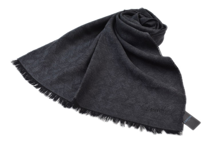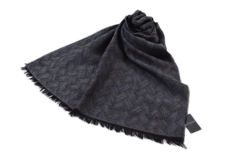 ランバン パリス ストール マフラー メンズ ブランド LANVIN PARIS ウール 100% ロゴ 刺繍 デザイン ダーク グレー 系 イタリア製 男性 紳士 x1x