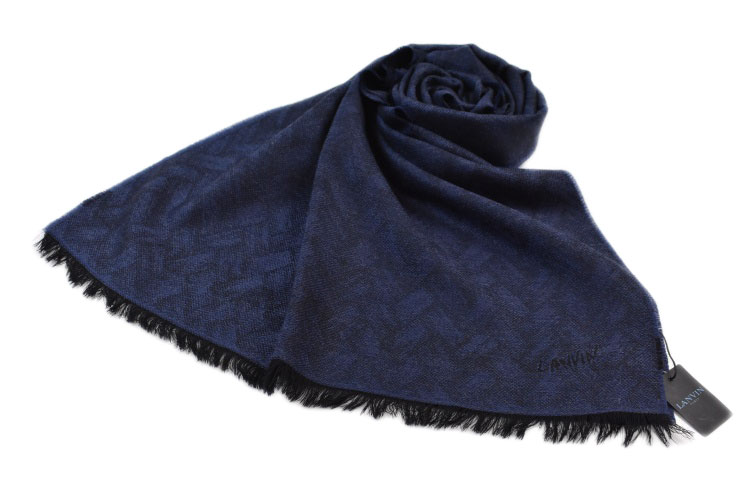 ランバン パリス ストール マフラー メンズ ブランド LANVIN PARIS ウール 100% ロゴ 刺繍 デザイン 紺 ネイビー 系 イタリア製 男性 紳士 x1x