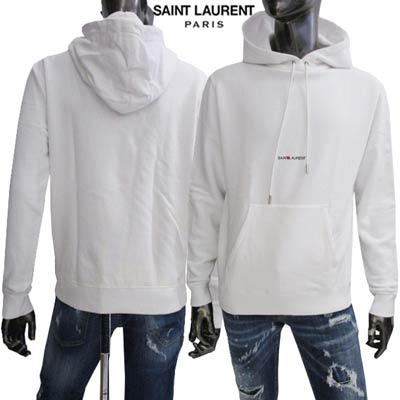 サンローランパリ SAINT LAURENT PARIS メンズ トップス パーカー フーディー ロゴ ※同デザインで色違いもあり サンローランスモールロゴ付パーカー ホワイト BMK 464581 YB2PG 9000 白19S (R89640/R91300/R126500)【送料無料】【smtb-TK】