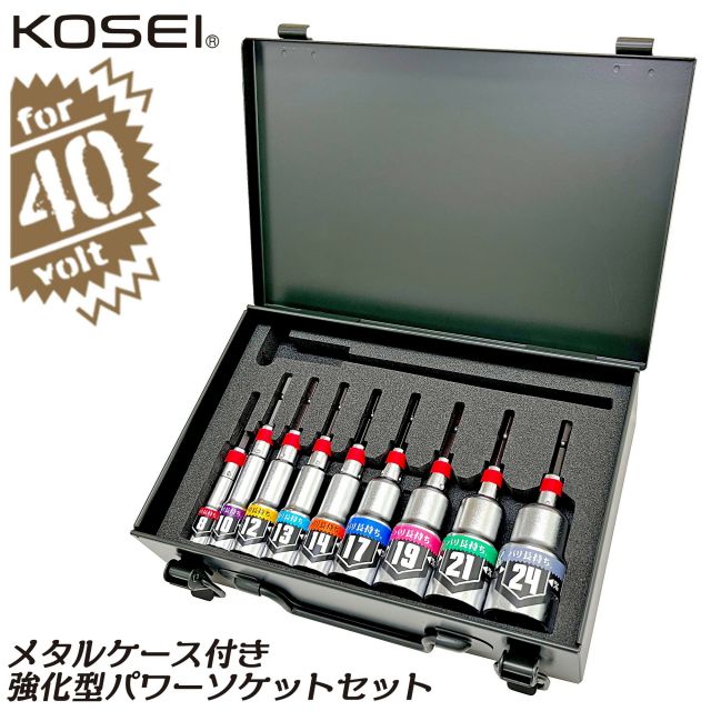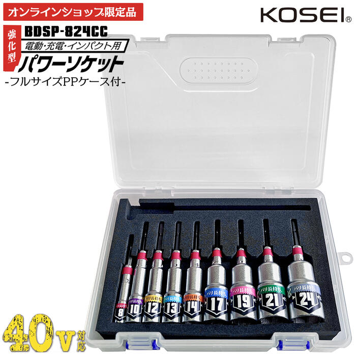 KOSEI [通販限定] 40V対応 強化型パワーソケット PPケース付きセット 8~24mm フルサイズ NKD-1 新サイズ軸 3ポイントロック 特殊圧入式 18V対応 36V対応 プロ ソケットセット 日本製 BDSP-824CC ベストツール コーセイ工業