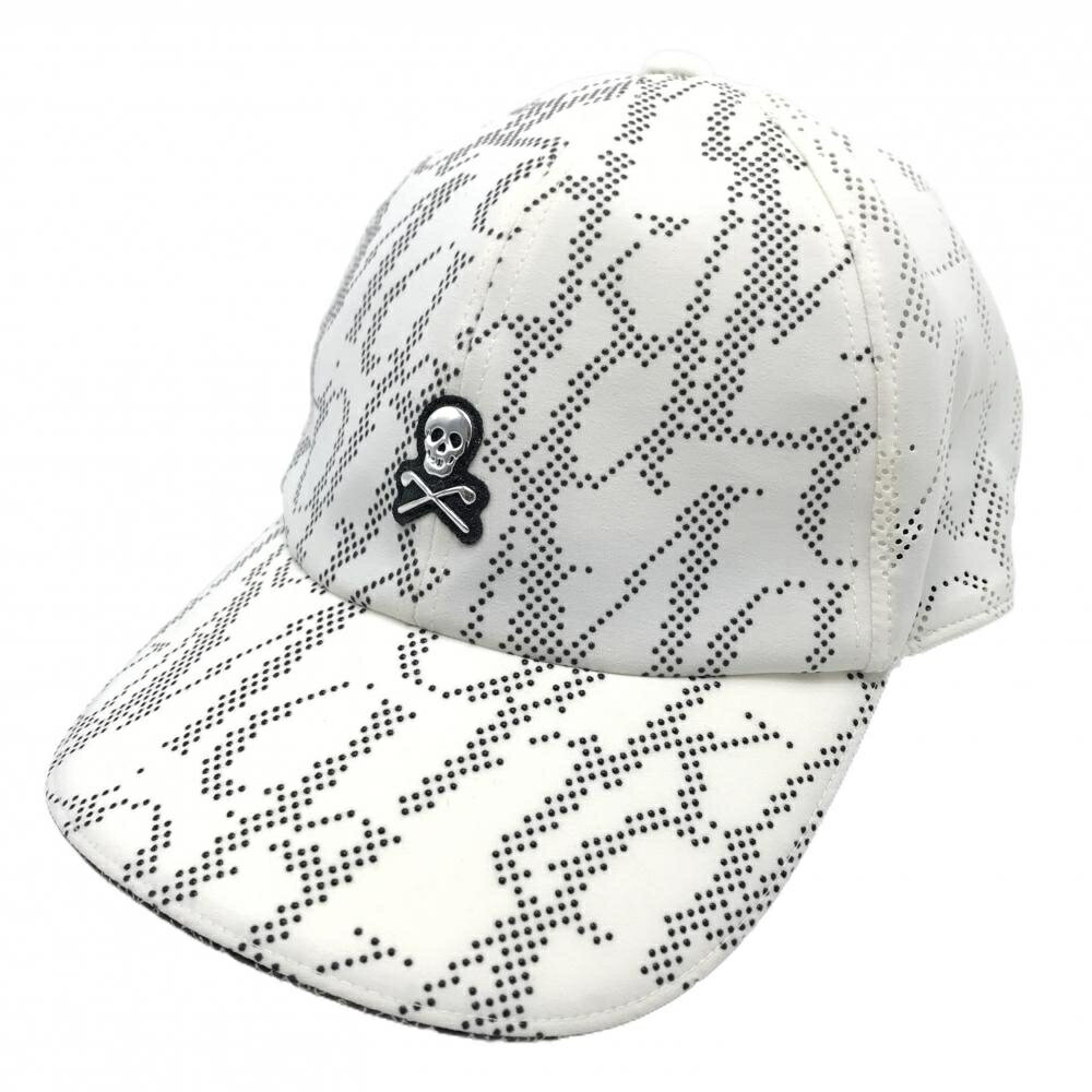マークアンドロナ キャップ 白×黒 ロゴ総柄 一部パンチング スカル FREE ゴルフウェア MARK&LONA
