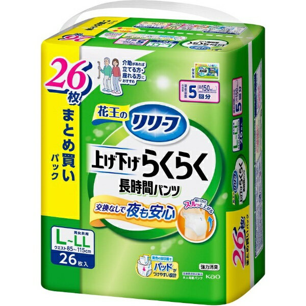 【大人用紙おむつ類】花王 リリーフ パンツタイプ 上げ下げらくらく長時間パンツ 5回分 L〜LL 26枚入