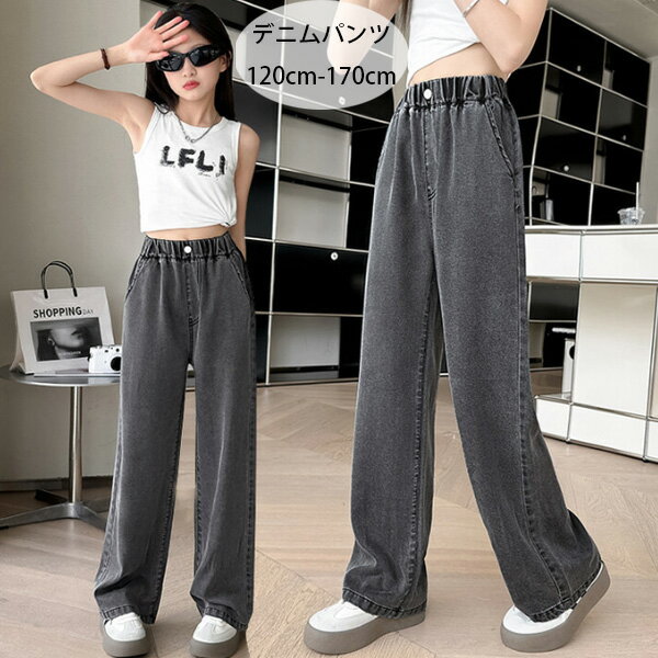 【6%OFFクーポン】韓国子供服 女の子 デニムパンツ ダークグレー ワイドパンツ 長ズボン ロングパンツ キッズ デニムパンツ ストレートパンツ 普段着 通学着 子供服 キッズ服 夏着 薄手 ジーンズ デニムワイドパンツ デニムパンツ 無地 ワイドパンツ 120 130 140 150 160 170