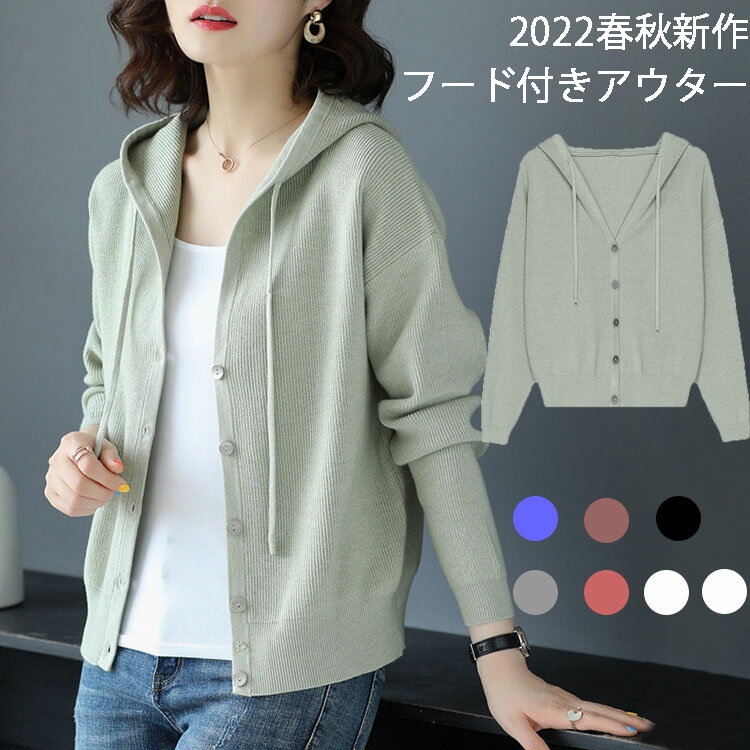 2022 秋物 フード付き アウター 羽織り ニット カーディガン レディース パーカー ゆったり 春秋 無地 ニット ショート カーディガン 薄手 前開き ニット アウター 長袖 お洒落 韓国風 日韓 全7色 YOYO