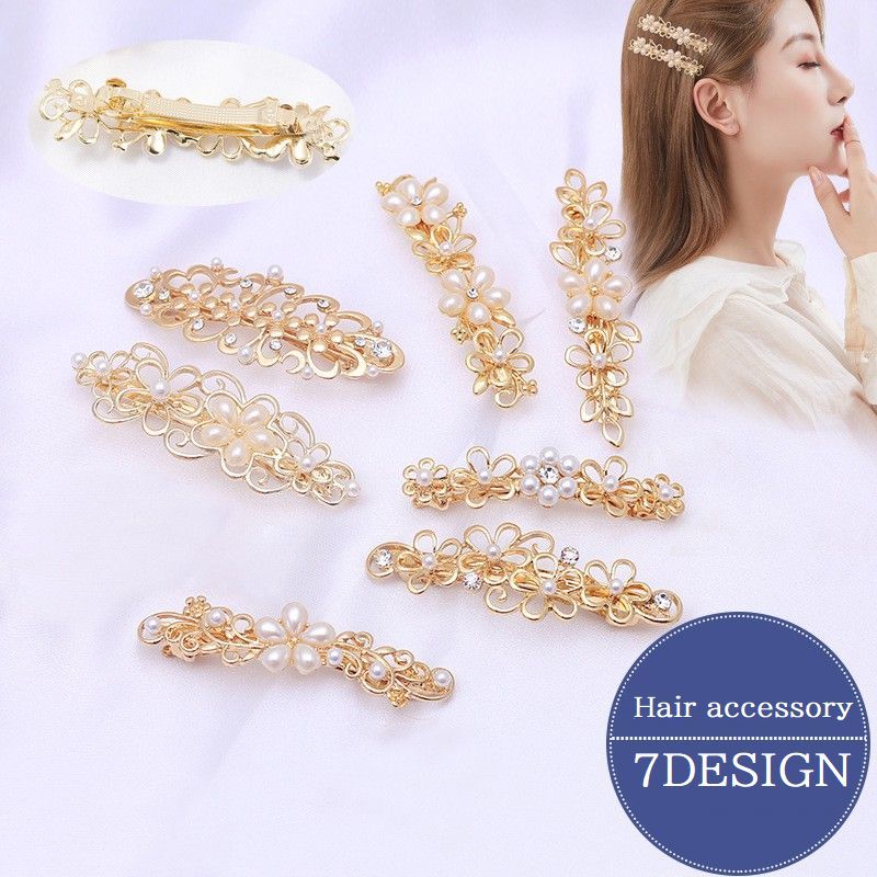 送料無料 バレッタ レディース 女性用 ヘアアクセサリー 髪留め 髪飾り フラワー 花 パール調 ラインストーン 可愛い おしゃれ きれいめ ヘアアレンジ まとめ髪 おでかけ パーティー