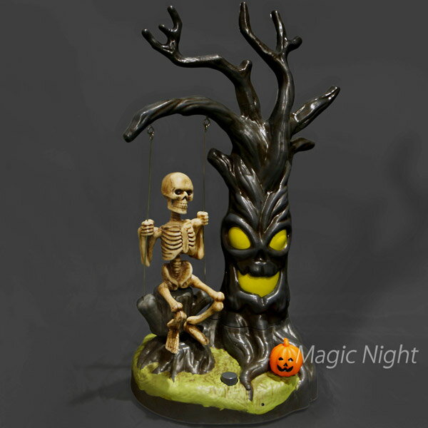 ムービングブランコ スケルトン【ハロウィン 怖い ホラー 飾り 置き物 オブジェ 光る 歌う 動く 面白い おもちゃ おばけ 骨 ガイコツ ドクロ スカル 骸骨 電池式】マジックナイト YI2025