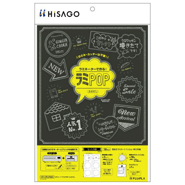 ヒサゴ|HISAGO ラミネートフィルム+用紙 CPリーフ ラミPOP ふきだし 100μm [18(A4 /3枚 /6面)] CPLP003