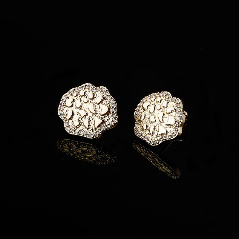 ピアス メンズ レディース 銅製 ジルコニア 蓮 フラワーモチーフ 型押し 光沢仕上げ 欧米 ヒップホップ 個性的 シンプル おしゃれ ゴールド シルバー ローズゴールド