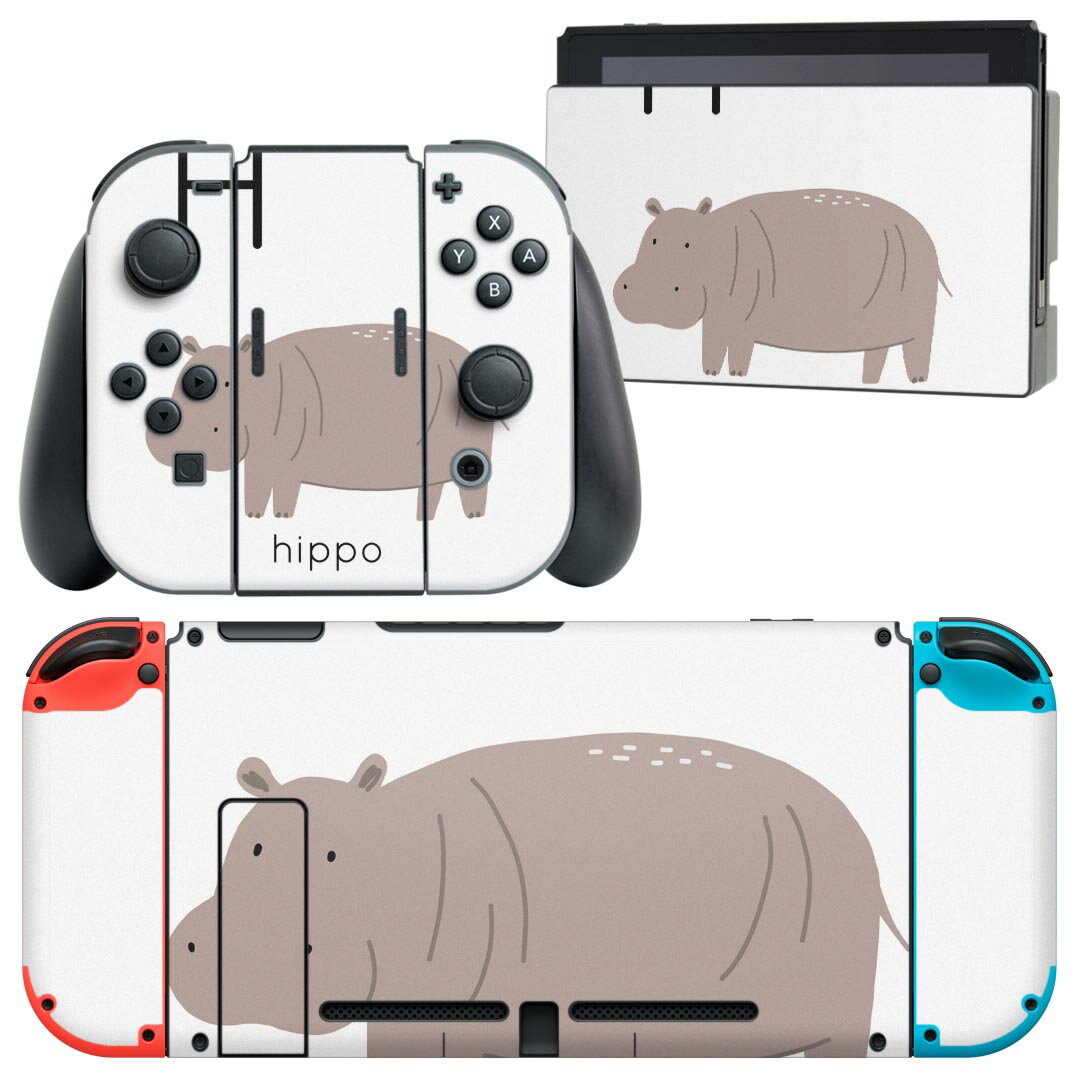 igsticker Nintendo Switch 用 デザインスキンシール 任天堂 ニンテンドー スイッチ 専用 本体ドック Joy-Con Joycon ジョイコン 専用 ゲーム機 カバー アクセサリー フィルム ステッカー 019940 動物 アルファベット H hippo カバ