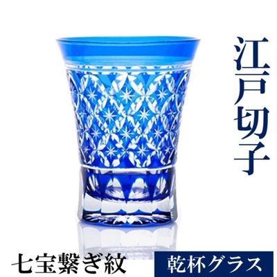 【ふるさと納税】江戸切子 ヒロタグラスクラフト 藍 乾杯グラス 七宝繋ぎ紋切子 切子 グラス 工芸品 伝統工芸 酒器 民芸品 【 墨田区 】