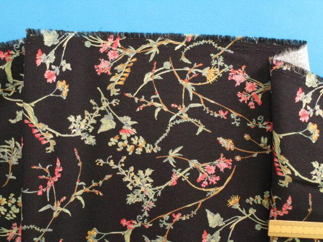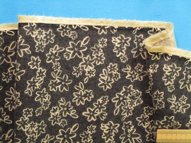 綿プリントビエラ起毛生地花・黒系(105cm幅 2m)