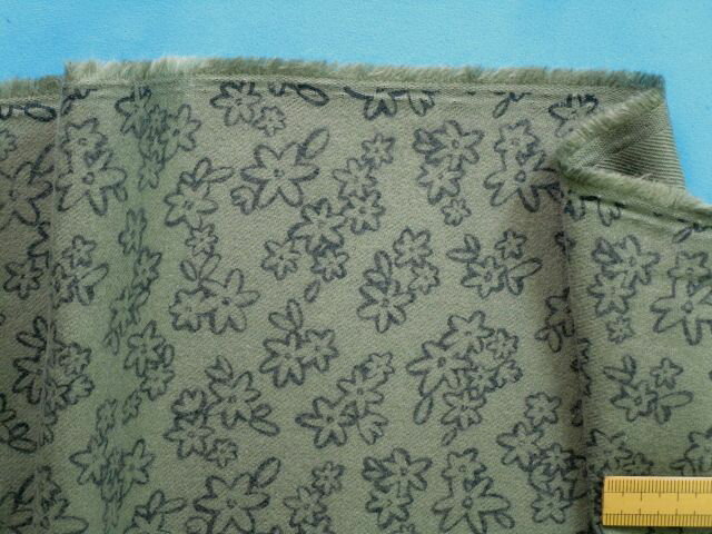 綿プリントビエラ起毛生地花・渋グリン系(105cm幅 2m)