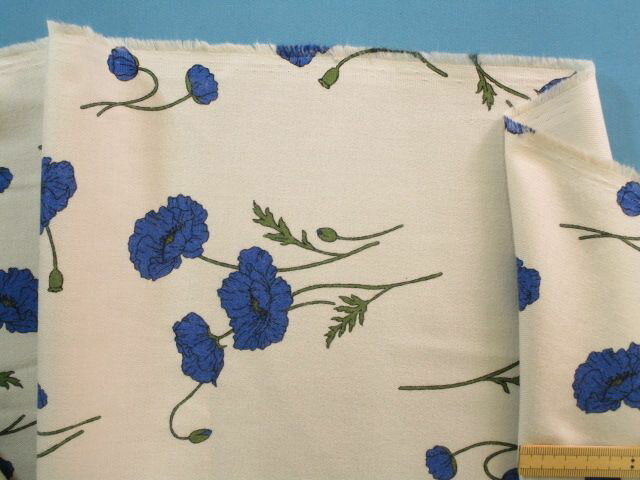 綿プリント起毛ビエラ生地花・ベージュ×ブルー(105cm幅 2m)