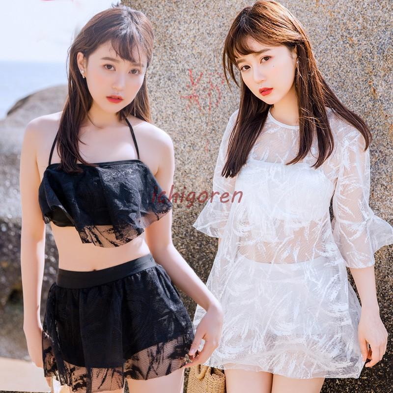 ichigoren0659【素材】:ナイロン 【カラー】:ホワイト、ブラック【仕様】:ビキニ3点セット(ワイヤー入り、ブラパッド内蔵)【サイズ】:(約) *参考体重:37.5-42.5KG(S)42.5-47.5KG(M) 47.5-55KG(L) 55-60KG(XL) 【商品説明】:水着レディース 体型カバー 水着3点セット タンキニ セパレート レースブラウス uvカット 小胸バンドゥビギニ 水着 セクシー 40代 可愛い スイムウェア 温泉 ママ水着