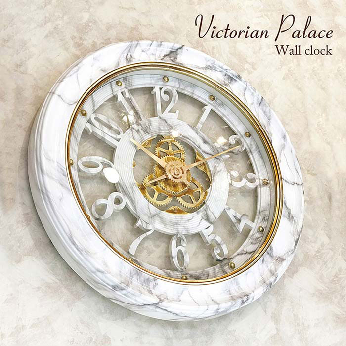 壁掛け時計 ビクトリアンパレス ウォールクロック(大理石柄:ゼブラマーブル) 無音連続秒針付 直径60cm 【ATC】