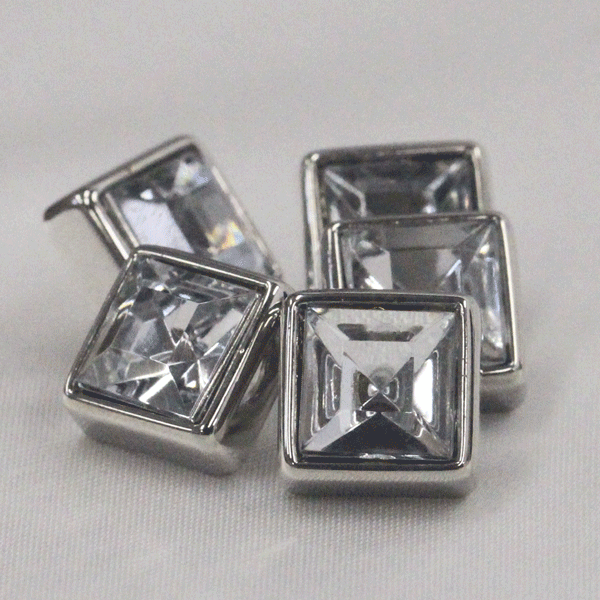 ボタン プラスチックボタン 12mm 1個入 四角 シルバー ニッケル ビジューボタン ラインストーン アクリル 12ミリ ブラウスやシャツにどうぞ
