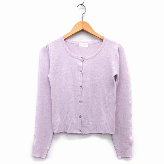 【中古】ロディスポット LODISPOTTO ニット カーディガン 長袖 丸首 フリル ビジューボタン 切替リブ M ラベンダー 紫 /HT10 レディース 【ベクトル 古着】 221003