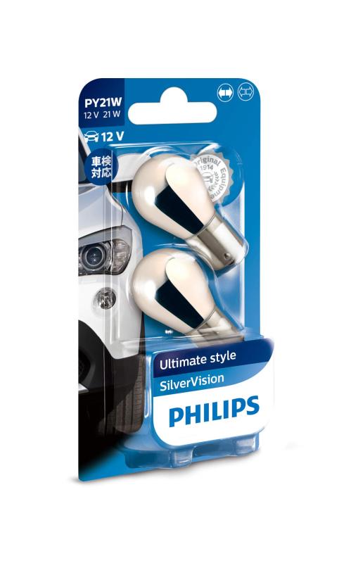 自動車用バルブ&ライト 白熱球 ウインカー S25(PY21W) 12V 21W シルバーヴィジョン アンバー ステルスタイプ 2個入り 車検対応 SilverVision 12496SVB2ウインカー球専用バルブタイプ:S25タイプ 12V21W (PY21W、ピン角違い対応) 口金形状:BAU15s 色温度(ケルビン):アンバー 入数:2個入りリフレクターの映りこみを軽減点灯時にはウインカー特有のオレンジ色(アンバー色)に、消灯時はオレンジ色が映りこみにくい特殊コーティングバルブ。ECE基準適合品Eマーク取得品。光量に関して:純正バルブ(白熱球)と同じ製品規格をクリア。ミラーコーティング(ステルス)バルブでも明るく、視認性の確保へ。車検対応シルバーミラーコーティング(ステルスバルブ)のネックであった、点灯時の明るさは車検基準クリア。国産車/輸入車対応デザイン純正バルブ形状、規格同等だから、LED化に伴うハイフラッシャー等のに悩まされることは。*純正装着バルブ形状をご確認下さい。ウインカーバルブ専用12V 21W用 純正バルブがアンバー色(オレンジ色)の白熱球に対応。(ピン角違いまたはPY21Wを含む)