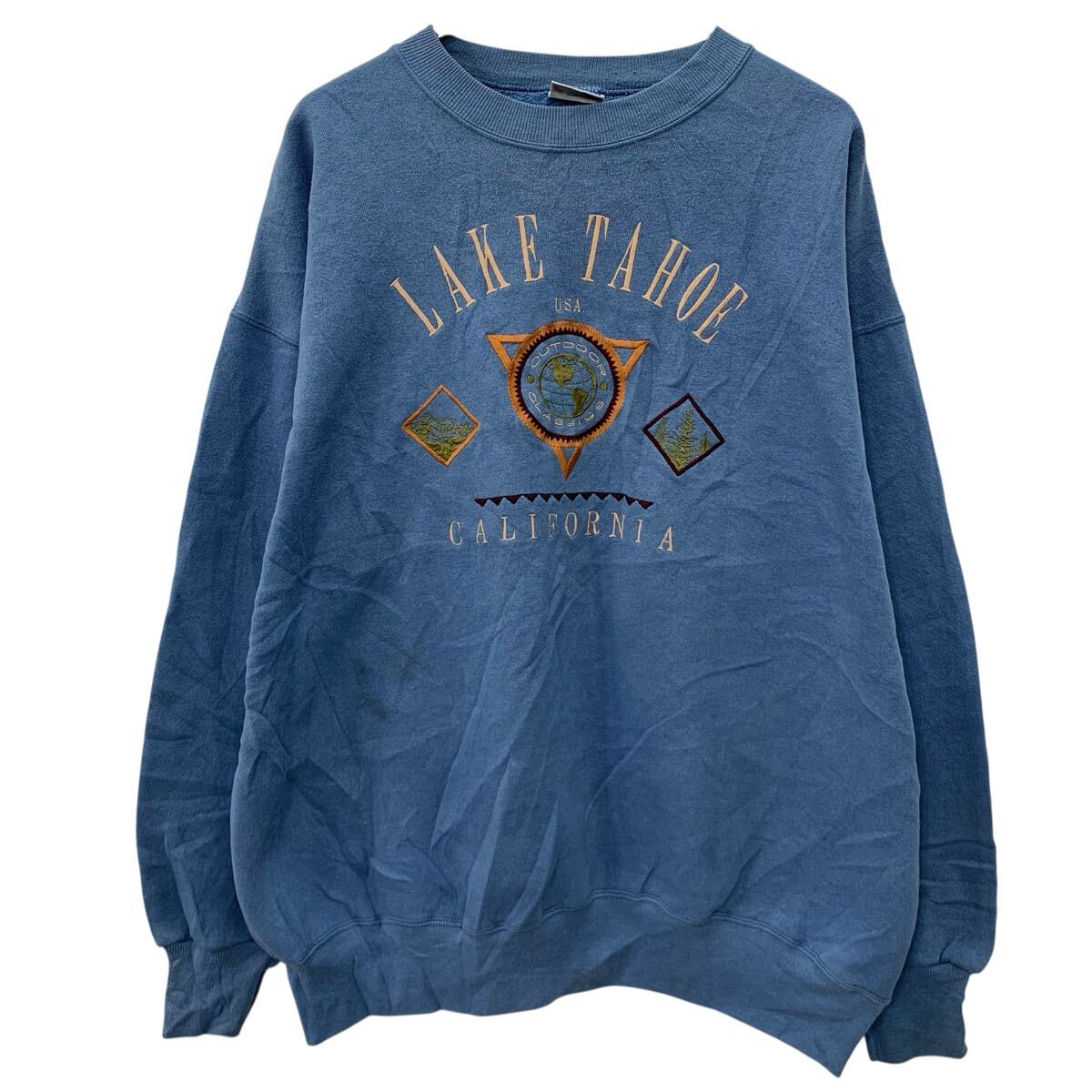 【中古】【古着】 Hanes ロゴスウェット トレーナー L〜 ブルー ヘインズ プルオーバー 刺繍ロゴ ビックロゴ スウェット ロゴトレーナー 春秋物 a802-5698