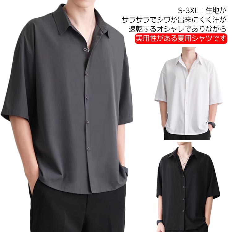 開襟シャツ メンズ シャツ カジュアルシャツ トップス 半袖 サラサラ 五分丈 冷感 夏服 半袖シャツ 長袖 おしゃれ 接触冷感 冷感シャツ 薄手 ワイシャツ カジュアル 無地 ゆったり ビッグシルエット 通勤 通学 紳士 S M L XL 2XL 3XL