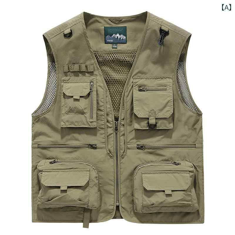 ベスト メンズ 男性用 メッシュ 速乾 薄手 釣り アウトドア カメラマン 多機能ポケット 作業着 大きいサイズ ビッグシルエット ナイロン カジュアル