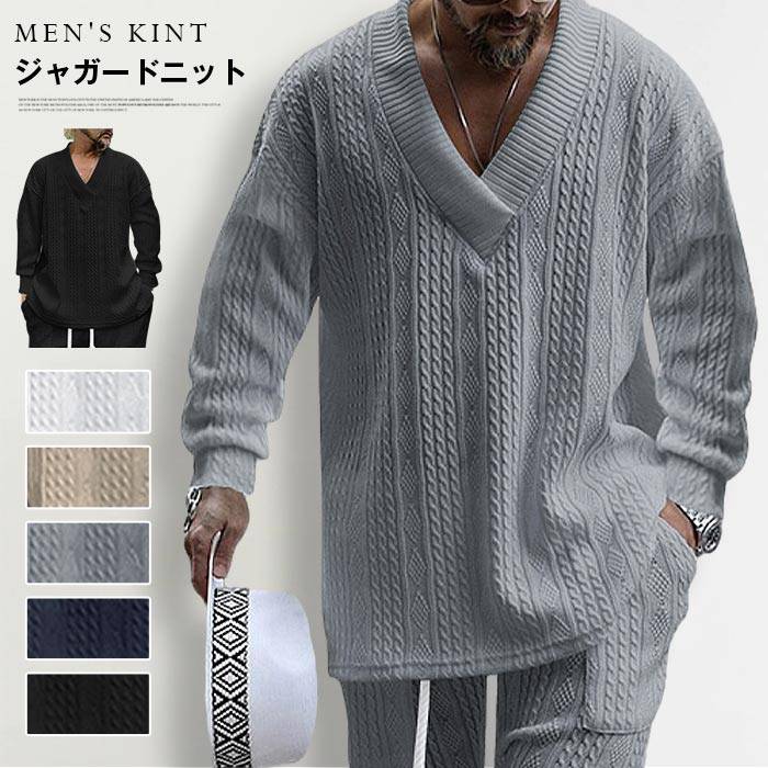 半袖tシャツ メンズ ニットtシャツ ビッグtシャツ ジャカード織り ニットトップス Vネック ニット 長袖ニットtシャツ ビッグt おしゃれ ファッション おしゃれ かっこいい シンプル 無地