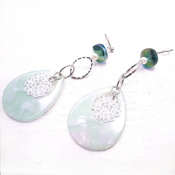 青緑か、緑青か・・・ ピアス アクセサリー 作家 ハンドメイド 【Elfanne】