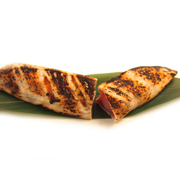 【内容(量)】一本釣り びんちょうまぐろのたたき(1本250g程、約3人前) 【原材料(産地)】びんちょうまぐろ 【賞味期限】冷凍保存で2-3ヶ月 【注意点】半解凍の芯が固い状態の方が切りやすいです。その後完全に解凍されてからお召し上がりください。一本釣りされたびんちょうまぐろは、生きたまま-40度以下の氷水(食塩水)に漬けられてあっという間に瞬間凍結されます。他の漁法(巻き網漁など)と比べると、漁獲されてから凍結までの時間が極めて短いため、鮮度に大きな差があります。びんちょうまぐろを食べたときに生臭いかどうかは、この漁法の違いによります。一本釣りされたびんちょうまぐろを一本一本丁寧に炙ってあります。外はカリッと香ばしく、中はトロッとお刺身状態です。解凍して切るだけで簡単にお酒の肴ができあがります! 「一本釣り」が美味しい理由 一本釣りされたびんちょうまぐろは、生きたまま-40度以下の氷水(食塩水)に漬けられて、あっという間に瞬間凍結されます。他の漁法(巻き網漁など)と比べると、漁獲されてから凍結までの時間が極めて短いため、鮮度に大きな差があります。びんちょうまぐろを食べたときに生臭いかどうかはこの漁法の違いによります。 「縮れ」は新鮮な証拠! このびんちょうまぐろは一本釣りのため、急激に解凍すると身が縮れます(縮れ=身がねじれる事)。この「縮れ」は新鮮な証拠ですが、あまり縮れないようにゆっくりと解凍する必要がありますので、食べる前日に冷蔵庫内に入れ、時間をかけて解凍してください。翌日には縮れもおさまり、身が柔らかくなっています。あとはパックから出して切りつけるだけです。よく切れる包丁で、引きながら切ってください。 「炙りたたき」シリーズの解凍方法 「炙りたたき」シリーズは簡単に解凍できます。おすすめはパックされたまま冷蔵庫で一晩かけてゆっくり解凍する方法です。お急ぎの場合にはパックのまま氷水につけて解凍してください。