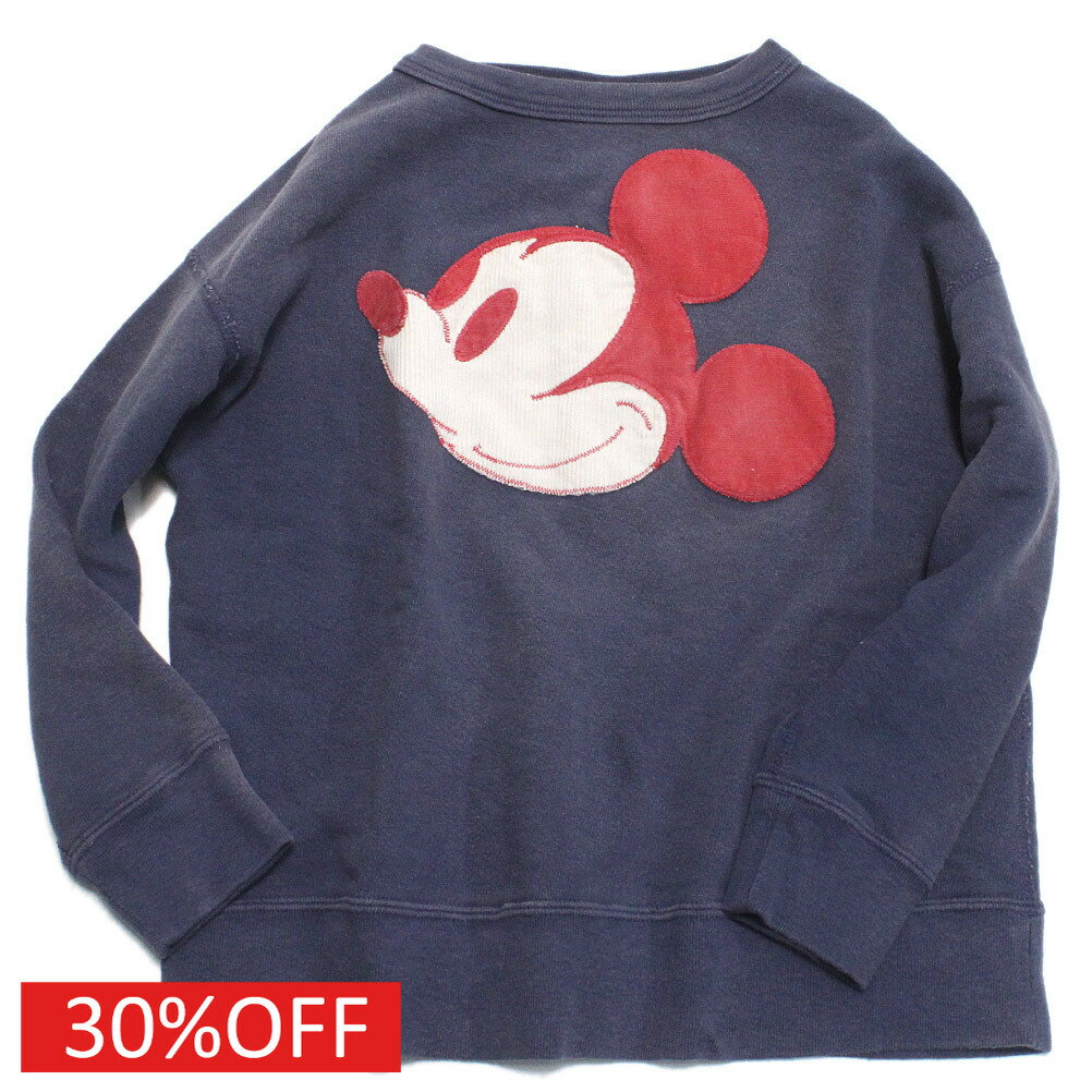 【DD×ミッキー/DENIM DUNGAREE×MICKEYコラボ/デニムアンドダンガリー子供服/ディズニー】 セール 【30%OFF】 ビンテージウラケ MICKEY ワッペン スウェット 4NV紺