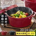 [楽天ランキング1位獲得★] 鍋 無水 両手鍋 IH ガス 20cm 24cm 26cm 無加水鍋 COTOCO ビーツレッド チャコールグレー アイリスオーヤマ 無加水鍋 IH対応 無加水調理 ガス火 調理 おしゃれ シンプル 軽量 軽い 新生活