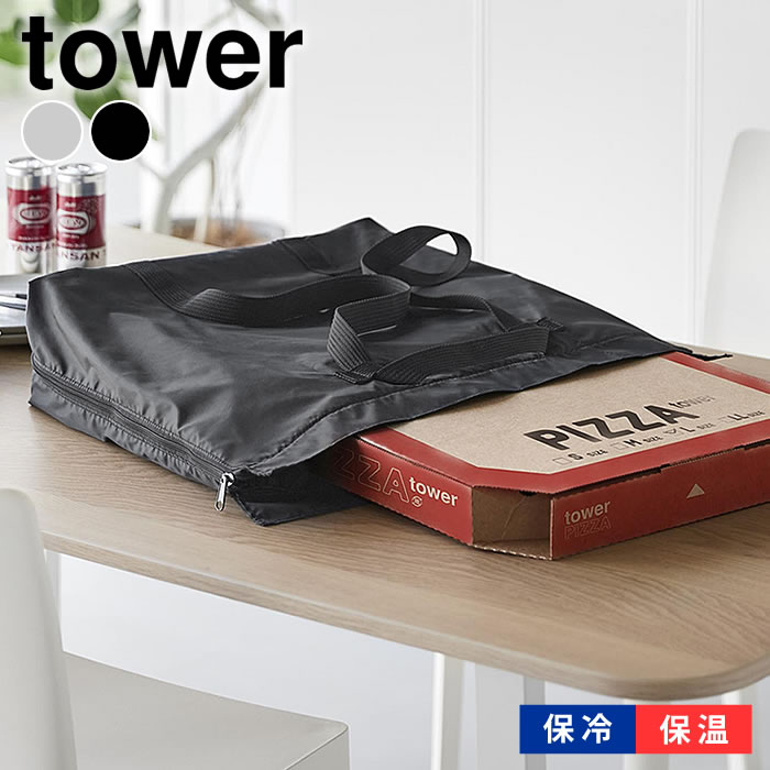 ピザ持ち帰りバッグ 保冷バッグ 大容量 おしゃれ テイクアウト 折り畳み 保温 買い物バッグ 水平持ち レジカゴ対応 3way 北欧 シンプル インテリア雑貨 タワーシリーズ towerシリーズ yamazaki( 山崎実業 洗える持ち帰り寿司・ピザが入るレジかごかばん タワー tower )