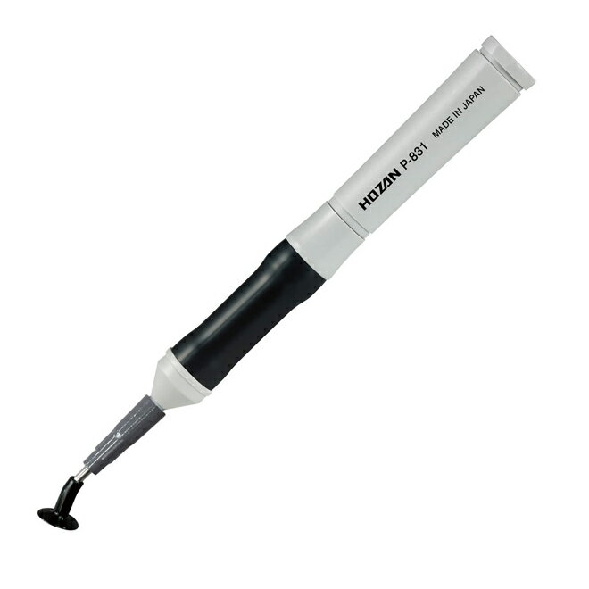 ホーザン(HOZAN) バキュームピック 吸着ピンセット 真空 ピックアップツール 対象物に傷がつかない P-831静電気対策ピックアップツール。手動タイプ。電源不要。ペン型吸着ピンセット・バキュームピンセット・真空ピンセット・キャッチャーピンセット。空気室を指先で圧縮し、目的物に押し当ててからはなすと吸いつきます。ピンセットではつかめない形状の部品や、キズがつきやすい部品などの組立作業に便利です。付属品:パット3種類(S・M・L)、ノズル(直・曲)※本体のグリップ内に収納できます。環境にも配慮したRoHS対応。【ESD管理値】Rg1×10^12Ω【材質】パット:シリコーンゴム、本体:ABS【重量】12g【耐熱温度】パット:220℃【吸着能力】Sサイズ(3.5mmφ):4g、Mサイズ(6.5mmφ):50g、Lサイズ(9.5mmφ):130g【用途】電子機器や精密機械の組み立て・修理、電子工作、チップ抵抗や小型ICのピックアップ、薄いガラス板や小さなレンズのピックアップ、プラモデル・模型・アクセサリーの製作、ハンドメイド、工作