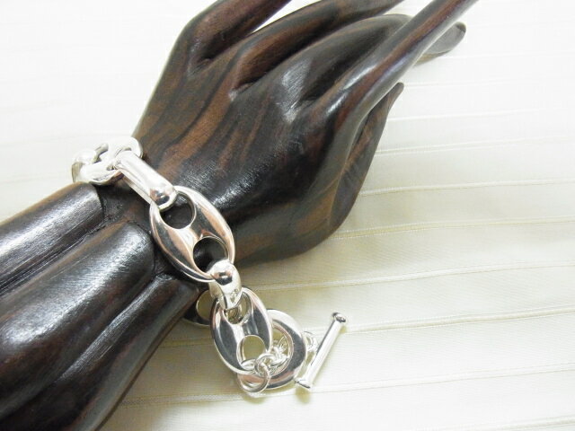商品詳細 素材 シルバー925(空洞ではなく無垢材) サイズ 全長約224mm(内周約219mm) 二つ穴チェーンコマ横幅約14mm 取り付け金具リング横幅約18.5mm 取り付け金具Tバー横幅約20mm 重量約37g〜約39g(個体差有) 備考 ※装着方法は、本体端のT字バー部分を、直角に立て反対側端リング部分の中に通し、真直ぐT字に戻しリングにひっかけ完了です。シルバー メンズ ラージ ピッグ ノーズ モチーフ チェーン ブレスレット SILVER925 ♪♪♪あのデザインをリーズナブルに今♪♪♪ ∞∞∞∞∞∞SILVER925∞∞∞∞∞∞∞ シルバー メンズ ラージ ピッグ ノーズ モチーフ チェーン ブレスレット SILVER925 シルバー メンズ ラージ ピッグ ノーズ モチーフ チェーン ブレスレット SILVER925